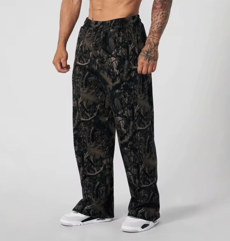 Stay active and stylish with these men’s jogger straight fitness pants, designed with a trendy camouflage pattern and a wide-leg cut for comfort and movement. Perfect for running, workouts, or casual streetwear, these breathable sweatpants keep you cool and relaxed all day.